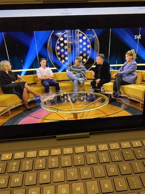 Carina med veckans gäster i soffan.