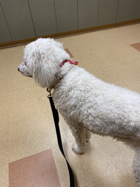 Vi lyckades få tid till veterinären direkt på förmiddagen som snabbt kunde konstatera att den vänstra analsäcken var alldeles fylld till brädden och den tömdes så snabbt som möjligt efter snabb undersökning.. Lilly fördes in i ett annat rum och proceduren gjordes utan att jag behövde vittna det hela. Det var säkert inte bekvämt, men när Lilly kom tillbaka mådde hon redan märkbart bättre. Hon sprang fram till mig och ville bli klappad med kopplet efter sig på golvet. Satte sig ner och bara såg så nöjd ut. En stor lättnad både för hunddamen och hennes Matte.