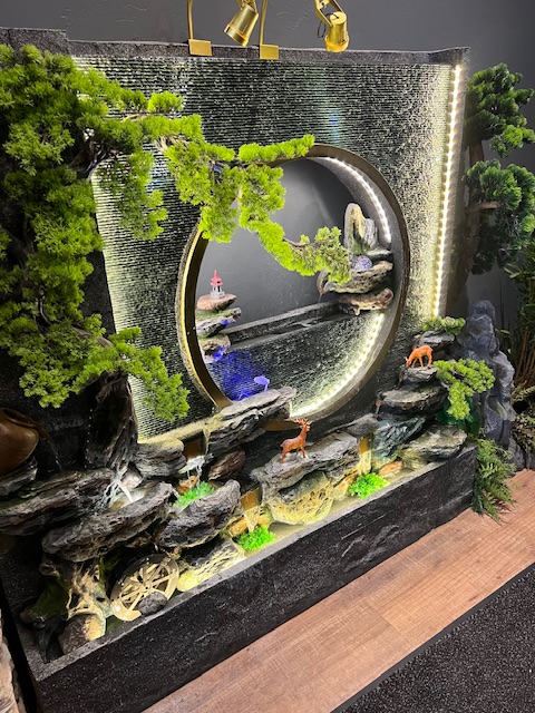 Dekorationen som stod på ett bord då man kom in i sushi restaurangen. Kanske svårt att se på bilden, men det är vattenfall och till vänster syns ett Bonsai träd. En riktigt trevlig dekoration var detta, men det syns inte riktgt på bilden hur häftig den var….