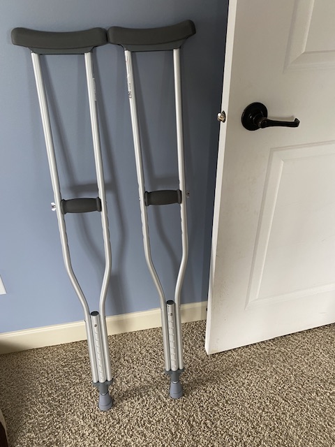 Sparkcykeln. Den som var så väldigt behändig de första två veckorna när jag inte alls fick stödja på foten, har blivit återlämnad till stället som hyr ut medicinsk utrustning. Kryckorna däremot ( som jag knappt använde eftersom jag var så väldigt dålig på dessa!) får jag behålla! Kliniken vill inte ha dem tillbaka. Lite märkligt faktiskt, men det var likadant när Dottern bröt benet för ett antal år sedan. Kryckorna fick hon också behålla! ( Under pandemin när det rådde brist på precis allt inom sjukvården tog Maken dem till sitt sjukhus. Klokt!) Så om det är ngn därute i cyberperiferin som behöver ett par kryckor, hojta till!