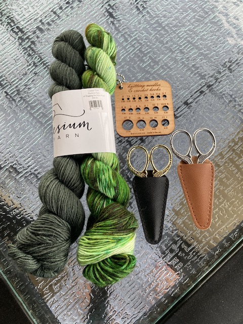 Två små nystan, 50 g vardera som såldes tillsammans. En liten grej att mäta stickorna med och man inte råkar veta vilken storlek man har. Två små saxar. En för Lillasyster och en för mig. Dessa små saxar är enkom för handbagaget när man flyger. Tillräckligt korta och därmed tar damen i säkerhetskontrollen i Vasa dem inte! Både Lillasyster och jag flög med småsmulor barnsaxar och dessa har alltid gått igenom säkerhetskontrollen förut. Då vi skulle flyga västerut tillbaka över stora Potten för två veckor sedan gick min sax igenom, men inte Lillasysters. Och de var precis likadana!