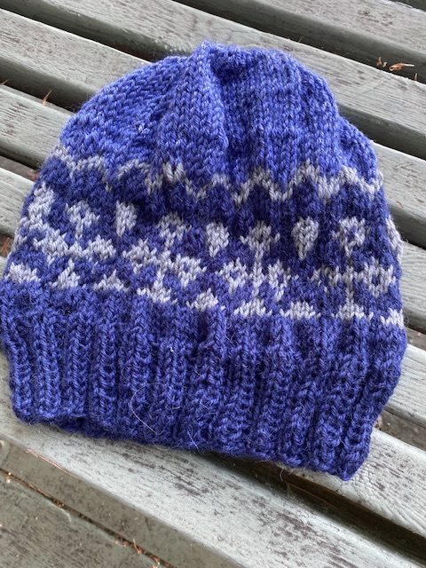 Naturligtvis är stickorna med. Denna gång rundstickan och denna mössa blev klar på lördagskvällen. Mönstret heter Gilhagi Hufa och var en gåva av Dottern från Island då hon och Maken åkte dit på bröllopsresa i juli. Jag fick också tre nystan Lettlopi garn, men här är mössan stickad i Novitas Nature garn. En lätt och trevlig stickning och eftersom jag har med ytterligare Novita garn satte jag upp en likadan mössa i andra färger denna eftermiddag.
