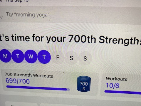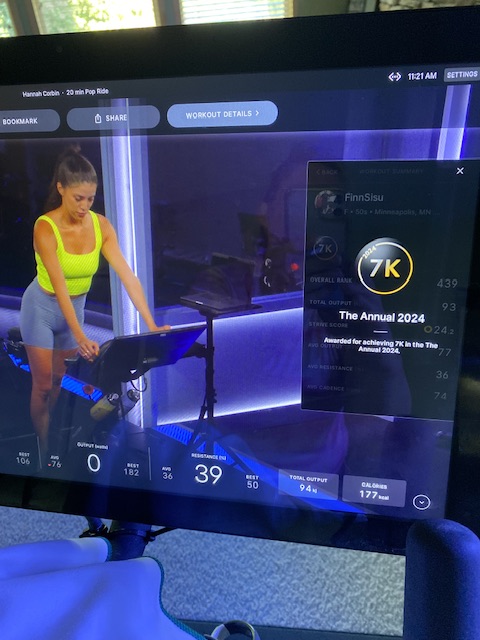 Om man dividerar 7 000 med 60 får man 116. Detta i sin tur delat på 30 blir runt 3,8. I detta fall handlar det om minuter, timmar och sist månader som jag har tränat hittills i år. Målet i början av året var 15 000 minuter eller 250 timmar, men i och med tå operationen i maj så blir det nog knappast så många tränade minuter när året är slut. Peloton appen håller reda på alla dessa minuter och det känns bra när jag åter får tusen minuter att lägga till saldot.