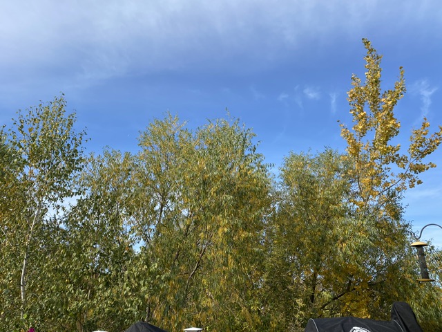 Jo men visst börjar vi ha höst här hos oss också trots den ovanliga värmen och torkan. Dessa bilder tog jag idag under eftermiddagen medan jag stickade på ett nytt mönster utomhus i solstolen och den hårda blåsten .