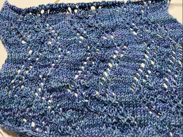 62 varv senare har jag en bra början på denna halsduk och jag är mycket nöjd och glad över min mönsterändring.