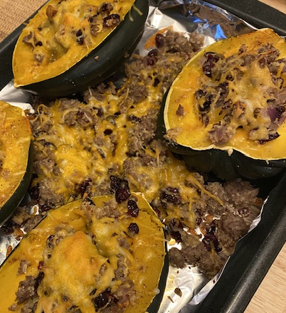 (Det blev extra av köttblandningen, så jag hällde den emellan squashhalvorna.)