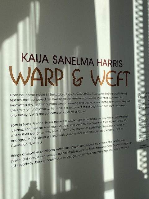 Den finländska konstnären Kaija Sanelma Harris levde mellan 1939-2022. Hon var född i Åbo i Finland och flyttade under krigsåren på 1940 talet till Sveriges som krigsbarn. Hennes värdmamma i Sverige var intresserad av både stickning och vävning och hennes egen mamma i Finland stickade. Kaija studerade textillära och kom så småningom till Reykjavik, Island som praktikant och träffade och gifte sig där med en amerikan. De flyttade så småningom till Saskatoon i provinsen Saskatchewan i Kanada.
