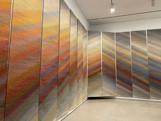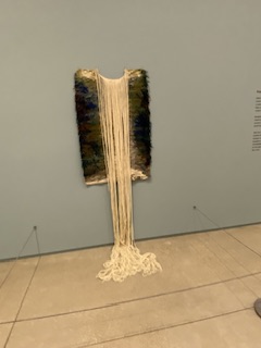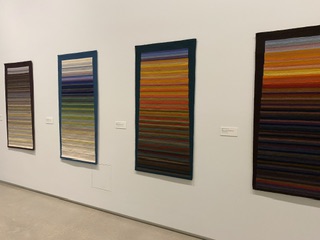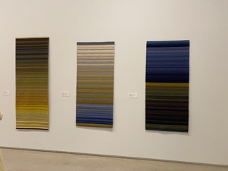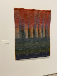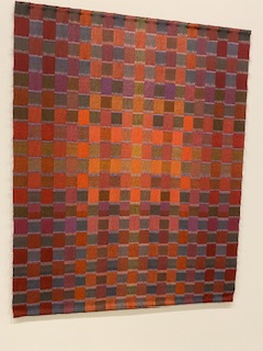 Efter denna trevliga lunch gick då färden till konstmuseet. Väninnan undrade om vi skulle ta oss en titt på utställningen som hölls just nu. Visserligen handlade den inte om stickning, utan den handlande om vävning och det kunde ju kanske vara en aning intressant ändå… ? Om inte kostade inte museet en hel förmögenhet i alla fall.