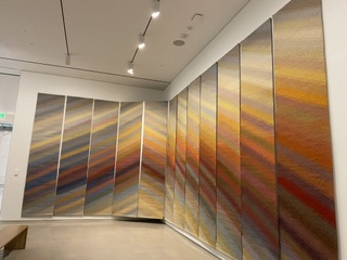 Helt fantastiska, vävda konstverk och vi var så nöjda båda två att vi beslöt oss för att besöka utställningen efter att vi hade stått i valet och kvalet. Guiden som visade oss runt och besvarade våra frågor var från Tyskland och uppskattade mina korta fraser med min numera så väldigt rostiga fraser på min skoltyska. Och det var ju lite roligt det med.