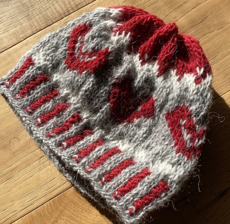 Lugn bara lugn. Det HAR stickats, om än inte fullt så mycket som normalt. Men visst knåpade jag ihop en mössa under helgen. Jag hade extra av det fina, isländska garnet Lettlopi och kombinerade tre olika mönster för mössan. Den är en aning stor, men jag blev ändå nöjd med den.