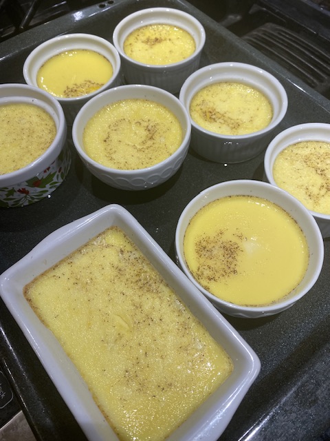 Finns säkert ngt namn på svenska också på denna rätt som är väldigt lätt. Mjölk, ägg, socker och vanilj vispas ihop och gräddas sedan i ungen i vattenbad. Länge sedan jag gjorde denna efterrätt, men både Maken och jag har i misstag handlat både mjölk och ägg som nu behöver användas…. Alltså blev det denna efterrätt ikväll.