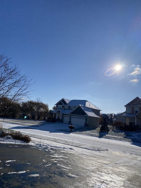Bor man på samma breddgrad som Milan ligger solen så pass på att snön smälter trots att vi befinner oss i december. Får jag det mesta av snön bortskrapade direkt på morgonen, hjälper värmen från den svarta asfalten och solen till och den resterande snön och isen smälter.