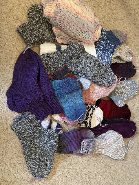 ….blev rätt imponerande ändå. Jag ägnade en stund denna kväll att gå igenom de tre korgarna jag har i mitt stickrum. Det var dags att städa ur dem helt enkelt. Jag hade tänkt mig att jag skulle försöka sälja en del, men det har helt enkelt inte blivit av.