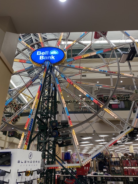 En sportaffär där vi också stannade och laddade hade bla pyntat med ett helt pariserhjul i miniatyr storlek!