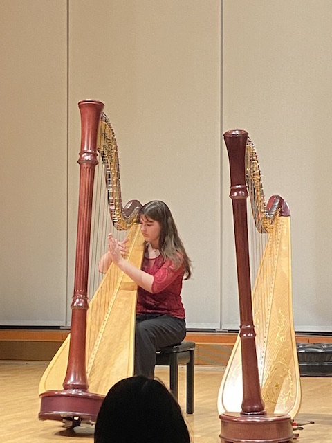 Två dagar har nu avverkats tillbaka i gymnasiets värld för Lillasyster. Den extremt korta skolveckan ( 2 dagar) avslutades med en harpkonsert vid musik institutet inne i Minneapolis. Denna konsert hade vi lite glömt bort under julen och nyåret, men till all lycka skickade den duktiga harpläraren ut en påminnelse i början av veckan. Lillasyster hade ändå övat rejält på Händels konsert skriven för harpa, så ingen fara där. Det är ett fantastiskt verk och hon har jobbat på det hela hösten. Ikväll uppträdde hon och de andra 13 eleverna som studerar vid musikinstitutet och det var fin och varierande konsert. Allt från den allra yngsta flickan, Ember som spelade en kort låt med en hand ( och klarade den med bravur måste påpekas!) till Lillasyster och två andra flickor i hennes ålder som alla är ungefär lika långt hunna.