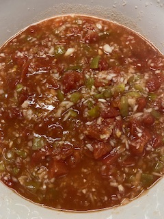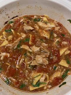 Tog de första skedarna… och såg häpet på varandra! Soppan var inte alls god! Den var rätt smaklös och för egen del smakade soppan som konserv från de gröna chili paprikorna! Vi åt varsin skål, men mera än så blev det inte.