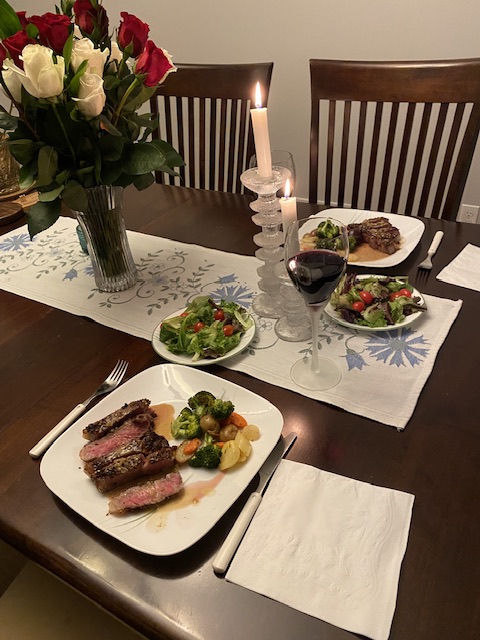 På kvällen åkte Lillasyster med Pojkvän ut på egna äventyr och Maken tog över köket. Ngn timme senare serverade han en otroligt god Valentine middag för oss båda och det var så mysigt! Det är sällan han hinner stå i köket med alla sina många och långa jobb timmar, men de gånger han kokar blir det riktigt, riktigt gott!