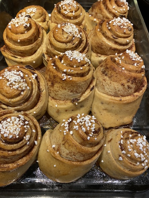 Pärlsocker är inte ngt som normalt används här i detta stora landet, så när Lillasyster med Pojkvän avnjöt varsin bulle undrade nog Pojkvännen vad detta märkliga var som fanns ovanpå. När han f ick förklarat för sig vad det var åt han med god aptit Dock inte lika god som Lillasyster som älskar kanelbullar!