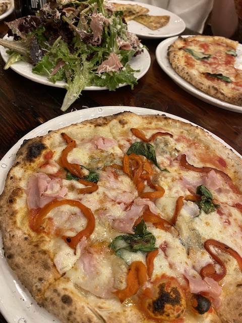 Efter en fantastiskt god middag på önskad resturang- pizzeria! Annars inga större utsvävningar för denna 17 åring idag. Hon har kalasat hela helgen ändå med Galentines fest på fredagen hemma hos oss och sedan ett annat kalas på lördagskvällen för kompis som fyllde 18 i december, men som valde att fira nu istället.