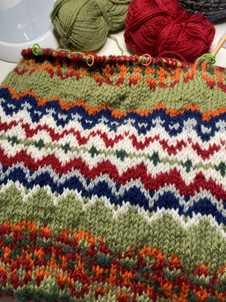 … och tappar bort mig i mönstret! Vilket betyder att det är högtid att sätta bort stickningen och krypa till kojs!