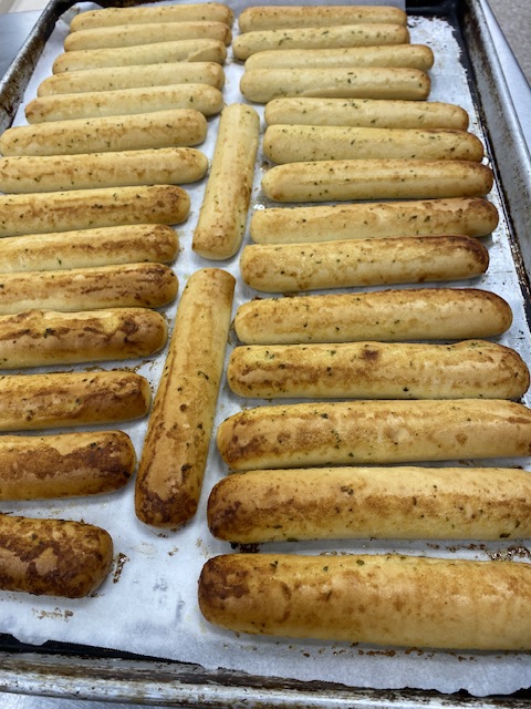 Min uppgift var att grädda brödpinnarna ovan. En lätt uppgift eftersom de var helt klara och bara att sätta in i stor, varm ugn i 8 minuter. Totalt var vi 5 stycken goda väninnor från min Bibelstudiegrupp som hjälptes åt med serveringen och det hela gick i ett huj! Och så roligt och välorganiserat det hela var. Vi serverade runt 80 personer på ca. 45 minuter och sedan städade vi upp efter gudstjänsten, vilket också gick som på räls.