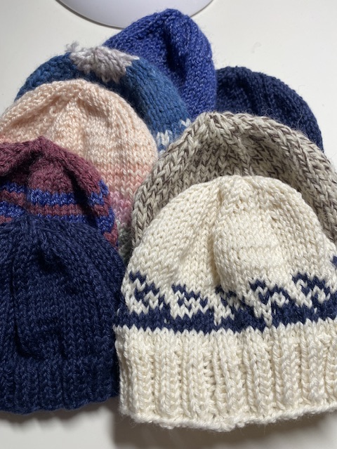 Jag fick en total snilleblixt runt midnatt senaste natt när jag låg och lyssnade på vindarna som gjorde allt för att försöka lyfta taket av vårt hem: det går ju faktiskt att sticka mönster på en liten mössa också! Sagt och gjort och här till vänster i bild ses den. Det handlar alltså om ett favorittema: vågor!