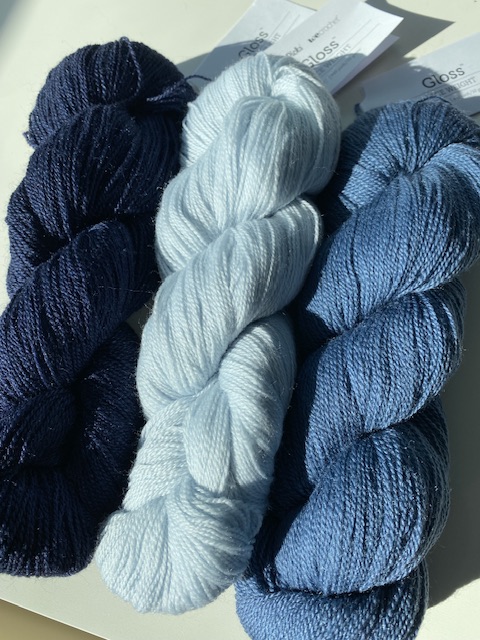 … kom levererad i postlådan denna eftermiddag tillsammans med solstrålarna och 6 plusgrader. Är detta garn inte ljuvligt, så säg?? Det kallas Gloss Lace, alltså glänsande spets och består av 75% merinoull och 25%silke och är otroligt mjukt. Som ni ser glänser det en aning i solen på bilden. Nystanen är på 50 g vardera och som ni ser är garnet väldigt tunt Sjalen som jag blev klar med tidigare i veckan skall egentligen stickas utav detta slags garn, så nu blir det ett nytt försök. Håll tummarna att jag får spetsen rätt denna gång!