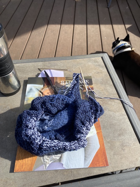Denna bild tog jag sent på eftermiddagen och eftersom det är sueprtidig vår är det som varmast då. Marken är ju ännu frusen. Däremot hade jag inte räknat med 18 plusgrader då jag satt ute och stickade i solen!