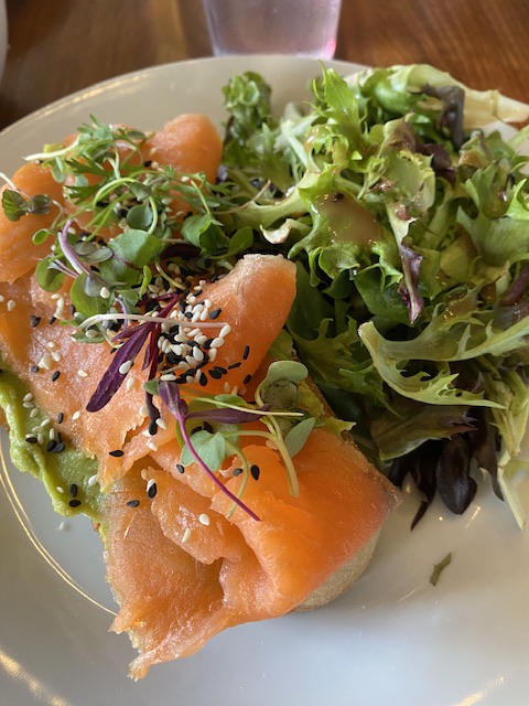 En helg nästan 500 km borta hemifrån går mycket snabbt i glatt och trevligt sällskap! Vädret bjöd på strålande sol hela dagen och några plusgrader. Vi började dagen vid ett trevligt och välbesökt cafe som vi besökt tidigare och för min del blev en utsökt avokado-och laxsmörgås till frukost.