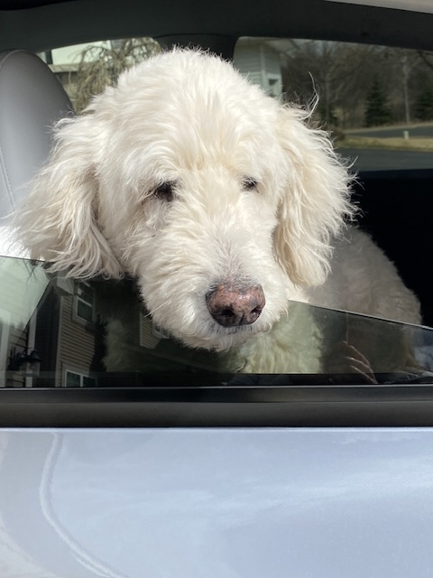 Lilly, som nästan rest land och rike runt, de senaste dagarna, var inte sen att hoppa in i bilen och ända upp på baksätet, när hon förstod att hon och hundlillasyster skulle få följa med. Lilly lyckades till och med öppna fönstret i bilen alldeles själv medan jag snabbt hämtade ngt inifrån i några minuter innan vi åkte. Det var rätt lustigt faktiskt.
