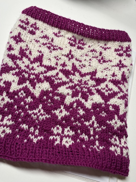 Jodå. Vintern är tillbaka och medan den härjade ute jobbade jag på min andra halsvärmare. Nu är klockan åter nära midnatt här i väster, jag har precis maskat av och sänghalmen kallar…. God natt!