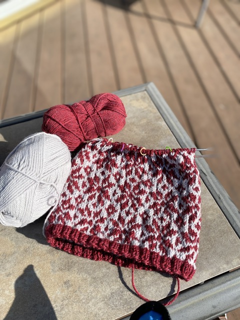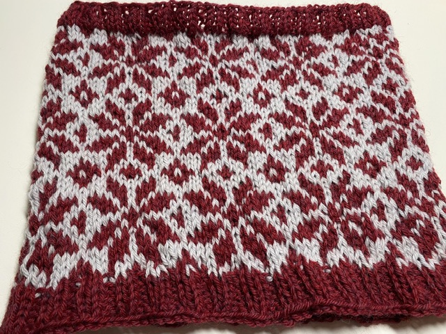 Nu på kvällen har jag stickat de resterande varven på halsvärmaren och maskat av. Jag måste säga att jag blev riktigt nöjd, för detta är två mönster kombinerade till ett!