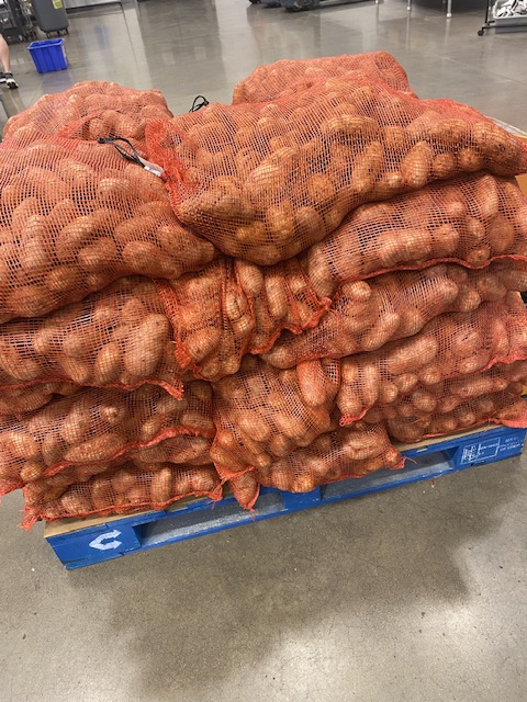 Dessa säckar radades upp och fördes med hjälp av handtruck in i det svala lagerutrymmet i väntan på leverans någonstans i delstaten. En av kvinnorna som jobbade vid centralen berättade att om 2-3 dagar skulle alla de säckar potatis vi packade ikväll ha åkt iväg. Vilket naturligtvis är bra eftersom det handlar om livsmedel som skall till folk runtomkring staten som behöver förmånligare alternativ till livsmedel.