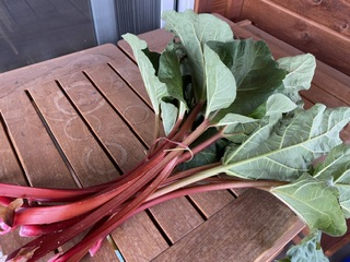 Snart kan jag också skörda årets första rabarber – då blir det en enkel paj. Fina sockor du stickar 👍