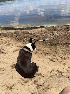 Nu när storasyster Lilly inte längre finns hos oss är lillasyster Fiona min ständiga följeslagare. Hon behöver inte ens vara kopplad för hon följer mig tätt i hälarna. Vart jag än går. Här har vi slagit oss ner på stranden för att ( för min del) gräva ner de bara fötterna i den varma sanden och bara njuta en stund.
