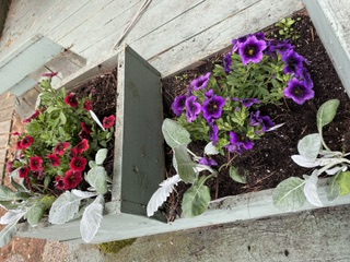 Det blev en mycket bra dag att åka till den lilla blomsteraffären och inhandla sommarens blomster för blomlådorna. Det är ngt visst med att gå omkring i växthusen och se på blomsterprakten, tycker ni inte? Färger, dofter, en och annan jordekorre som jag såg i en av krukorna. Den hann stirra tillbaka mot mig innan den sprang iväg. Två kolibrin flög också omkring inne i ett av växthusen, men här i norra Mellanvästern är de inte särkilt vackra fåglar. Brungråa, små fåglar med långa näbbar, som flyger snabbt omkring, nästan som insekter. Tyvärr hann jag inte få dem på bild, för snabba är de!
