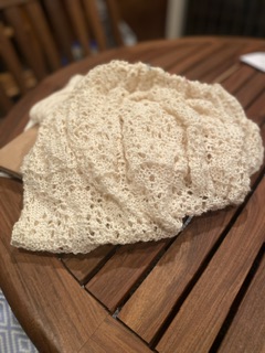 Så retfullt att garnet tog slut men förhoppningsvis hittar du samma och av samma färgbad. Jag tycker sjalen ser jättefin ut så det ska bli intressant att se det färdiga resultatet.