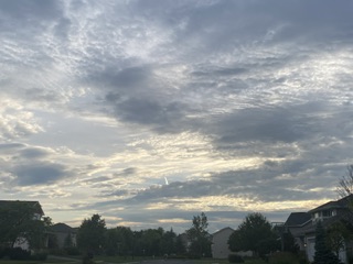 Efter middagen, som ikväll bestod av hemgjord potatissallad , kålsallad, bruna bönor och grillade revbensspjäll, blev det åter en vacker himmel. Ingen regnbåge då, men medan vi vinkade av Svärföräldrarna som hade ätit middag med oss samtidigt som de fick en chans att hälsa på barnbarnen, var Lillasyster åter framme med mobilen och kameran och tog flera fina bilder av den vackra kvällshimlen och molnformationerna….