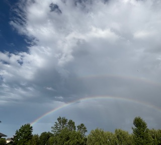 Jo men visst lyckades Lillasyster fånga båda regnbågarna så snyggt? Förhållandena måste väl vara exakt så för att regnbågen skall visa sig gissar jag. Förhoppningsvis lyckas du få en eller två på bild ännu i sommar.