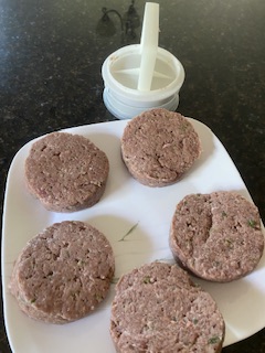 När jag började göra egna biffar fick jag en sk biffpress av Svärmor. En rätt antik grej tillverkad av Tupperware, men den fungerade… Tills för några år sedan då det inte alls stämde och biffarna bara föll sönder och det inte alls blev bra. Frun/husmor i huset blev bara irriterad och så byggdes den nya matbutiken endast 2 km bort. Denna matbutik säljer färdiga, färska biffar för bra pris, 2 för USD 7 och de fanns i alla möjliga olika smaker och varianter. Varpå mor i huset slutade irriteras på egen smet och biffar och köpte…