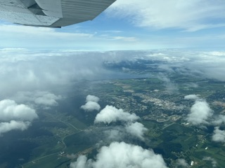 Sonen och Flickvännen klarade de mulna väderförhållandena alldeles utmärkt och Maken fick sitta i baksätet och ta bilder av den vackra utsikten. På den nedersta bilden ses motorvägen, men också landningsbanan långt borta. Detta var den första etappen.