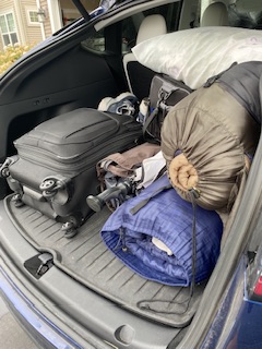 Idag var däremot allt som det skulle vara och ganska snart var allt packat i det lilla bagageutrymmet och Maken, som hamnade att flyga i baksätet, klättrade in.