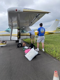 Det var en del som skulle med, men bagaget vägdes noggrant innan vi åkte iväg till flygfältet. Sonen hade meddelat att alla tre resenärerna fick packa med 15 amerikanska pund eller runt 7 kg på var.