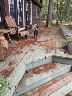 Tallarna hade verkligen skräpat ner de senaste veckorna och det var bara att ta fram kvasten och sopa rent. Som jag skrivit förut, har man stuga i en skog, så har man….