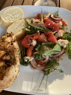 Det blev mera sallad på vattenmelon, körsbärstomater, rödlök och fetaost och grillade kycklingbröst till middag ikväll. Det gäller att vara en aning kreativ i köket så att man inte behöver använda spisen mera än nödvändigt i denna värme.
