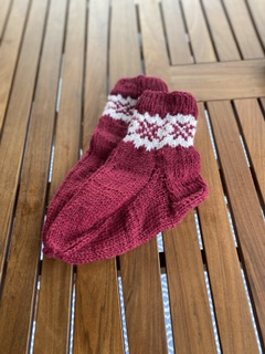 Redan på förmiddagen blev jag klar med detta par sockor. Nu börjar jag ha ett nätt litet lager, så om det är ngn därute i periferin som gärna vill ha ett par sockor eller två, så säg till! Detta röda och vita par är stickade i Ella Rae, ett yllegarn gjort i Turkiet. Påminner mycket om Novitas 7 bröder garn. Möjligen inte riktigt lika grovt.