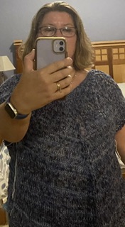 Jag har avmaskat toppen i bomullsgarn ikväll under stickningen via skärmen och jag kan faktiskt ha den på mig! Den är till och med för stor! Och jag som trodde den inte ens skulle gå på mig!