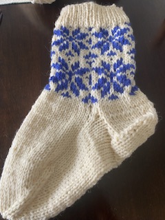 Till följd av denna tropiska frukt och värme blev det stickning inne istället.. Jag blev klar med den första sockan och har kommit en liten bit på väg på den andra.