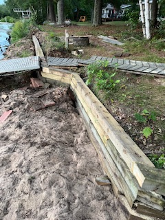 De stora bjälkarna är alla på plats och en mycket nöjd Make kröp i säng tidigt efter en lång dag med hårt, fysiskt jobb. Däremot använde han mera finess och teknik denna gång än vad han gjorde för två veckor sedan. Hans rygg är visserligen trött efter detta digra jobb, men han skadade sig inte denna gång.