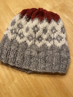 Själv har jag också varit produktiv men på ett litet stillsammare sätt. Mössan till vänster blev enorm, men säkerligen varm och till höger ses båda som jag stickat dessa dagar här vid stugan.. Däremot kan jag meddela att det inte är ngt fel på min rygg!